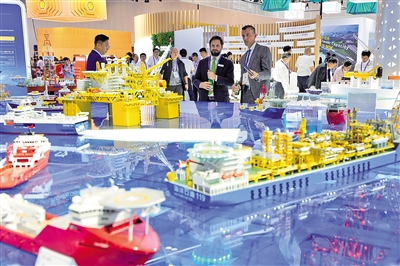 5月20日,在第29届世界燃气大会中国海油展区,几名外国与会嘉宾在参观。当日,以“赋能可持续未来”为主题的第29届世界燃气大会在北京国家会议中心举行,这是世界燃气大会首次在中国举行。据介绍,本届世界燃气大会将举办80余场高规格专题论坛,涵盖LNG发展、天然气与可再生能源耦合、能源安全、数字化转型等领域,400余位嘉宾将就行业趋势与技术革新展开深入交流。大会同时举办展览,面积达5万平方米,为历届世界燃气大会之最。新华社记者 鞠焕宗 摄