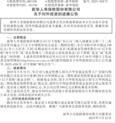新华人寿保险股份有限公司关于对外投资的进展公告