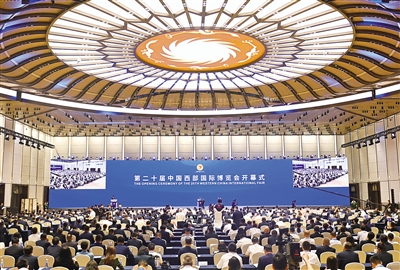 这是5月25日拍摄的第二十届中国西部国际博览会开幕式现场。当日,第二十届中国西部国际博览会在四川省成都市开幕,主题为“深化改革增动能 扩大开放促发展”,由四川省人民政府主办。据了解,本届西博会首次设立匈牙利、老挝双主宾国和浙江、青海双主宾省,共吸引境内外3000余家企业参展,博览会将持续至29日。新华社记者 刘坤 摄