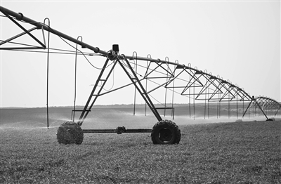 多年来,内蒙古赤峰市阿鲁科尔沁旗大力推广种植优质牧草,推动草产业快速发展,逐渐探索出一条现代草产业发展之路。图为在赤峰市阿鲁科尔沁旗,自走式喷灌机在为牧草浇水。新华社记者 彭源 摄