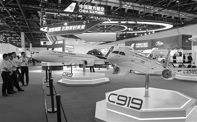 5月26日,参观者在第三届民航科教创新成果展的中国商飞展区参观。当日,以“创新领航 智连世界”为主题的第三届民航科教创新成果展在北京国家会议中心开幕。展览展出面积2.2万平方米,由100余家参展单位组成七大特色展区,聚焦教育、科技、人才三大领域,集中展示我国民航自主创新技术和国产民机、无人机等先进制造技术成果。新华社记者 鞠焕宗 摄