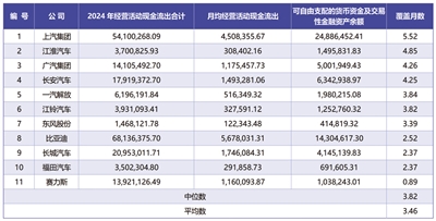 据了解,车企一般将3至4个月左右的月均付现成本作为最低现金保有量;若低于2个月,则被视为资金紧张。