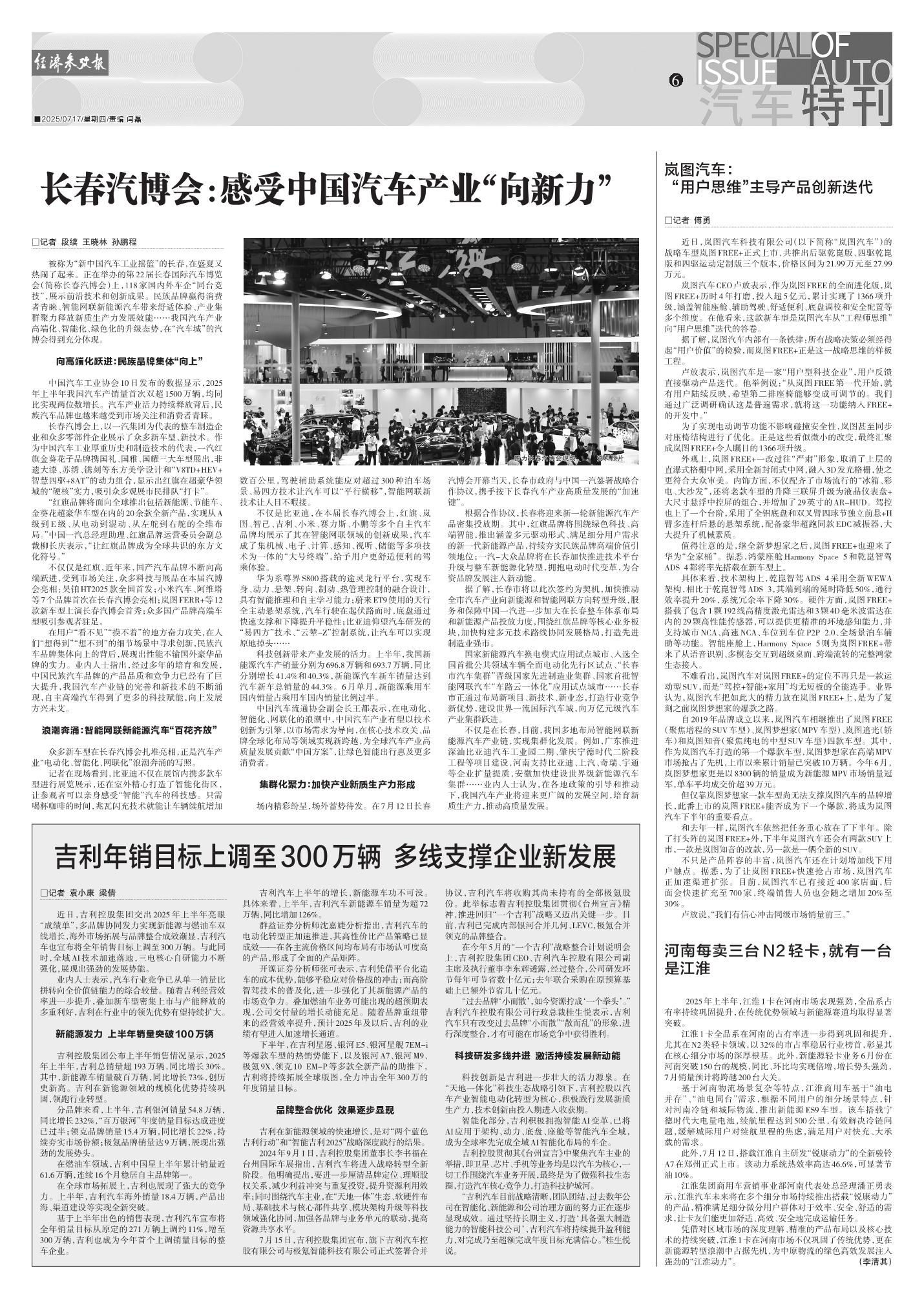 吉利年销目标上调至300万辆 多线支撑企业新发展