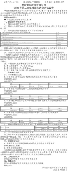 中国银行股份有限公司2025年第二次临时股东大会决议公告