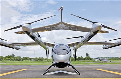 7月22日,峰飞航空科技向合利创兴智能交付我国首架获颁“适航三证”(TC、PC和AC)的吨级以上eVTOL(电动垂直起降)航空器V2000CG凯瑞鸥,标志着吨级以上eVTOL在技术与适航认证上实现突破,大型eVTOL向低空运营商业化闭环迈出坚实的一步,助推低空经济应用加速落地。图为在交付仪式现场展示的V2000CG凯瑞鸥电动垂直起降航空器(7月22日摄)。新华社记者 方喆 摄
