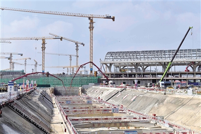7月30日拍摄的济滨高铁机场隧道施工现场。当日,由山东铁投鲁南高速铁路有限公司建设、中铁十局承建的济(南)滨(州)高铁机场隧道贯通。济滨高铁机场隧道是济滨高铁的控制性工程,采用地下明挖法施工,全长2710米。据悉,济滨高铁是津潍高铁通道及山东省快速铁路网鲁北通道的重要组成部分,是国家铁路网“八纵八横”快速通道主骨架京沪、青太通道的重要联络线。新华社记者 郭绪雷 摄
