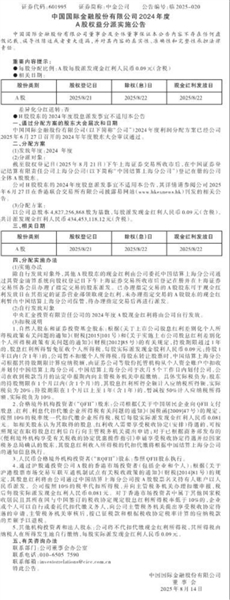 中国国际金融股份有限公司2024年度A股权益分派实施公告