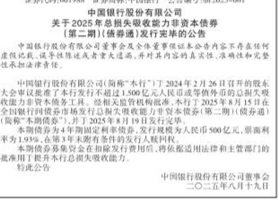 中国银行股份有限公司关于2025年总损失吸收能力非资本债券(第二期)(债券通)发行完毕的公告