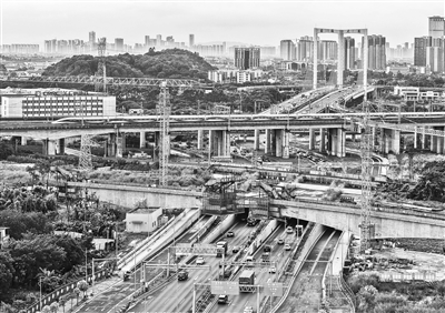 8月25日,施工人员在广南联络线跨动走线特大桥进行连续梁施工(无人机照片)。日前,由中铁十一局承建的广(广州站)南(广州南站)联络线建设取得新进展,“永庆号”盾构机稳步下穿陈村水道,跨动走线特大桥连续梁施工即将完成。广南联络线建成后,京广高铁、广深港高铁、贵广高铁、南广高铁等铁路线可直达位于中心城区的广州火车站,广州大都会交通枢纽功能将进一步增强。新华社记者 刘大伟 摄