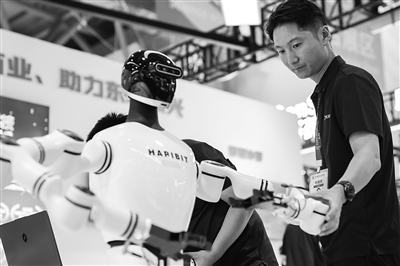 8月27日,第十五届中国-东北亚博览会在吉林长春开幕。图为工作人员在第十五届中国-东北亚博览会现代化产业馆内调试展出的具身智能机器人产品。新华社记者 许畅 摄