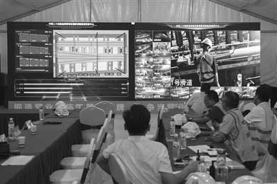 日前,在浙江绍兴城际铁路柯桥站施工现场,总重4000余吨的钢箱梁应用人工智能(AI)技术顺利实现精准落位,标志着在运营铁路桥梁上尝试应用AI技术换梁取得阶段性成果,为我国既有铁路改造升级提供了新方案。图为工程技术人员在施工现场指挥部实时关注工程进展。新华社记者 黄宗治 摄