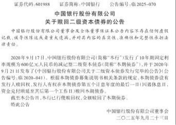 中国银行股份有限公司关于赎回二级资本债券的公告