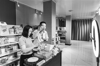 10月11日,在重庆市永川区吉安镇石松村,重庆永泸强村农业开发有限公司的工作人员利用线上直播售卖大米。近年来,重庆市永川区吉安镇与四川省泸州市泸县立石镇积极探索新型农村集体经济跨区域合作模式。新华社记者 黄伟 摄