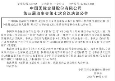 中国国际金融股份有限公司第三届监事会第七次会议决议公告