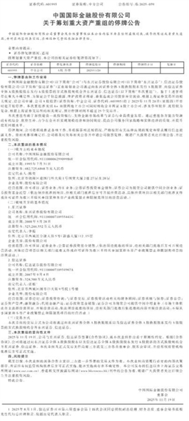 中国国际金融股份有限公司关于筹划重大资产重组的停牌公告
