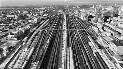 11月27日,中欧班列在中国铁路哈尔滨局集团有限公司满洲里站内整装待发(无人机照片)。记者从中国铁路哈尔滨局集团有限公司了解到,截至11月27日,作为中欧班列“东通道”的重要组成部分,满洲里铁路口岸今年货物过货量突破2000万吨,同比增长0.3%,创历史新高。新华社发(黄旭 摄)
