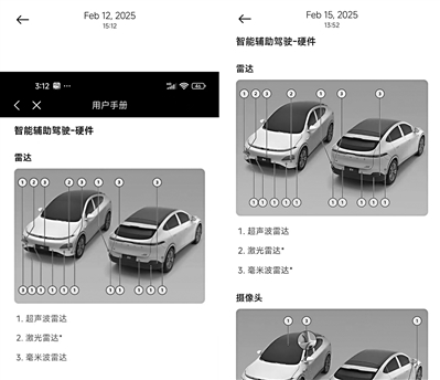 邓女士说,在她投诉后不久,小鹏App的电子用户手册中关于2023款小鹏G6755超长续航Max的配置内容,竟被悄悄修改,毫米波雷达数量从5颗变成3颗。邓女士遂向12315投诉小鹏汽车擅自减配事项,工商部门称涉嫌欺诈需诉请法院处理。此事已诉至法院,排期候审。