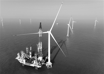 1月13日,由三峡集团与金风科技联合设计建造和示范应用的20兆瓦海上风电机组在福建闽南海域完成吊装。该机组的成功吊装,是我国海上风电大容量机型应用的又一重要突破。图为“大桥海风”号2000吨自升式海上风电安装平台和20兆瓦风电机组吊装现场(无人机照片)。新华社记者 林善传 摄