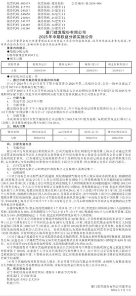 厦门建发股份有限公司2025年中期权益分派实施公告