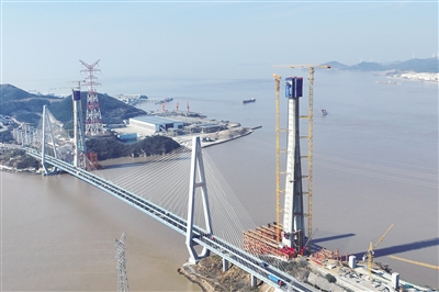甬舟铁路桃夭门公铁两用大桥6号主塔顺利封顶