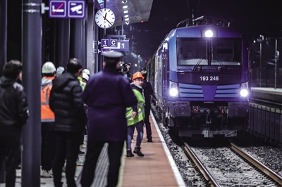 匈牙利当地时间2月27日零时(北京时间2月27日7时)许,一列货运列车从匈牙利首都布达佩斯的费伦茨城火车站驶出,标志着匈塞铁路匈牙利段正式开启货运运输。新华社发(鲍洛格·达维德 摄)